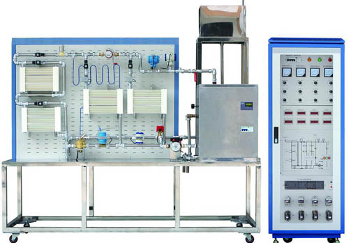 實(shí)訓(xùn)對(duì)象采用不銹鋼方鋼焊接而成,桌面采用鏡面不銹鋼板折邊連體設(shè)計(jì),上半部件安裝部分采用鈑金結(jié)構(gòu)設(shè)計(jì),表面采用等距一字形網(wǎng)孔設(shè)計(jì),方便管路及散熱器的安裝固定,同時(shí)右側(cè)高處設(shè)立開式補(bǔ)水箱,并裝有透明管液位指示,以方便觀察水箱位水位狀態(tài)。
