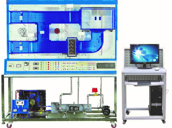 本實訓裝置由實訓臺、安裝網(wǎng)孔板、制冷系統(tǒng)、循環(huán)水系統(tǒng)、空氣處理系統(tǒng)、自控系統(tǒng)和上位監(jiān)控工程等組成