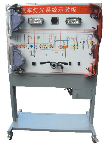 本產(chǎn)品選用原車(chē)燈光系統(tǒng)實(shí)物,展示汽車(chē)燈光系統(tǒng)的結(jié)構(gòu)與原理;面板上繪有完整的燈光系統(tǒng)的電路圖,設(shè)置有檢測(cè)端子,可通過(guò)儀器儀表檢測(cè)各種信號(hào)參數(shù)如電壓、電阻、頻率等。