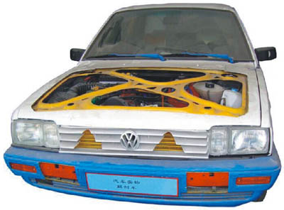 多功能解剖車選用桑塔納2000為基礎(chǔ),可容易地看見發(fā)動機艙、車身側(cè)圍的構(gòu)造結(jié)構(gòu)、鋼板的厚度及獨立懸掛的結(jié)構(gòu),甚至車輪的輪轂及輪胎的橫截面。此外,車內(nèi)方向盤、排擋桿、手剎、安全帶固定裝置及安全帶卷等平時都被包裹嚴實的部件也被特別地一剖為二,內(nèi)部工藝精度、構(gòu)造清晰呈現(xiàn),能夠展示汽車各總成裝置以及各附件位置。